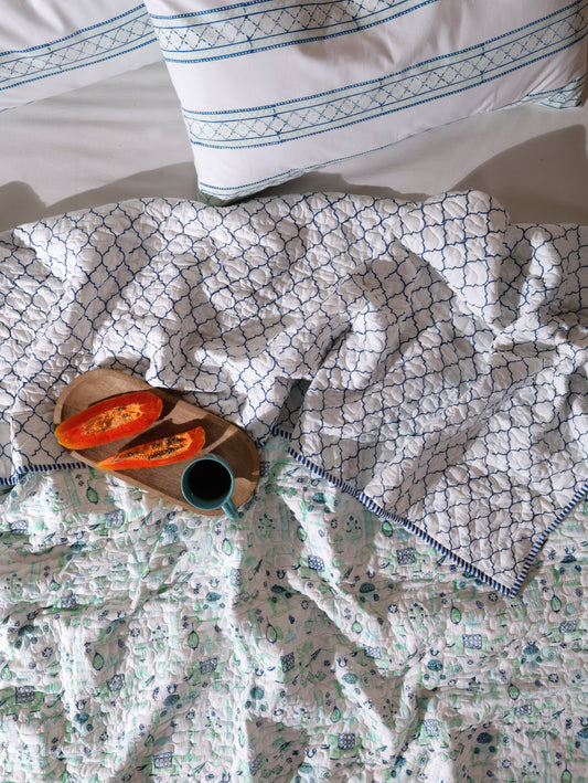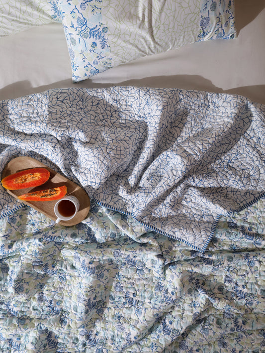 Blue and green heera jaal motif mulmul quilt