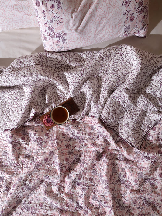 Lilac and pink teen anaar mulmul quilt (abstract jaal)
