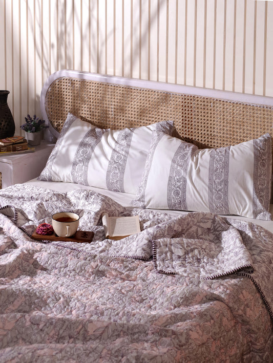Pink and grey gadh jaal bedsheet set
