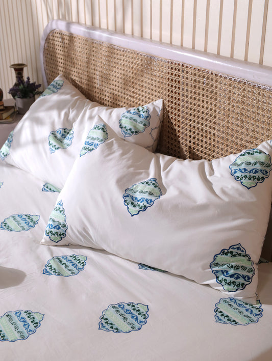 Blue and green heera jaal motif bedsheet set