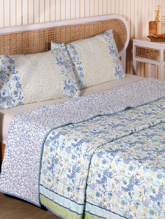 Blue and green heera jaal motif mulmul quilt