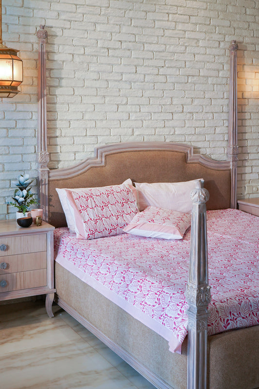 Magenta and pink kamal phool bedsheet set (floral jaal)