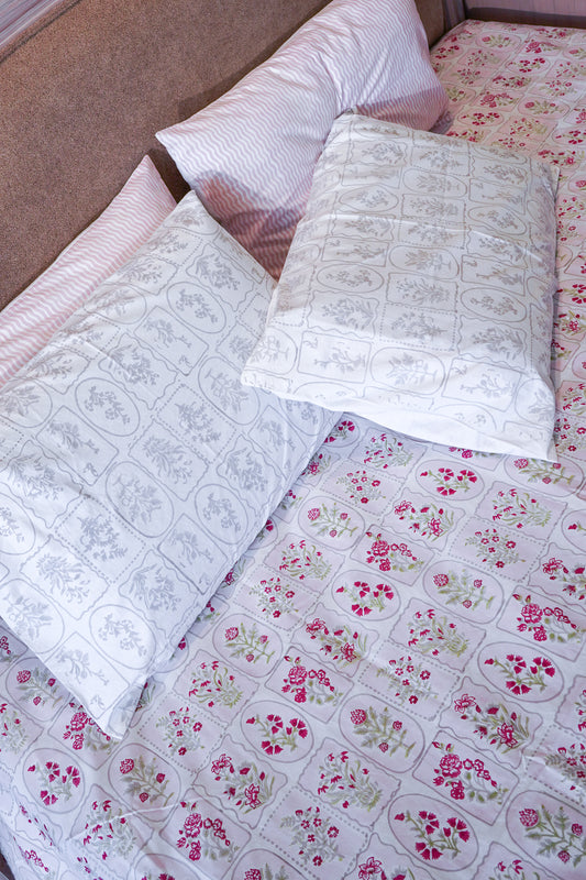 Pink and grey gadh jaal bedsheet set