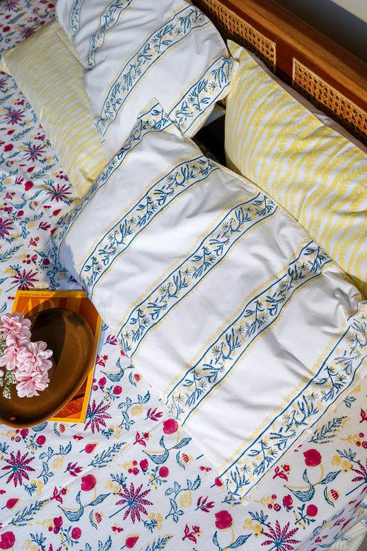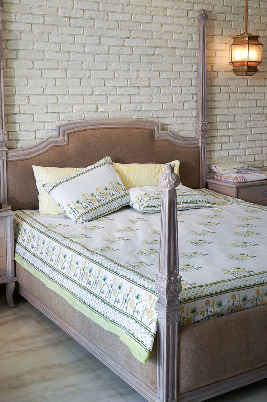 Lime and blue phal aur phool bedsheet set