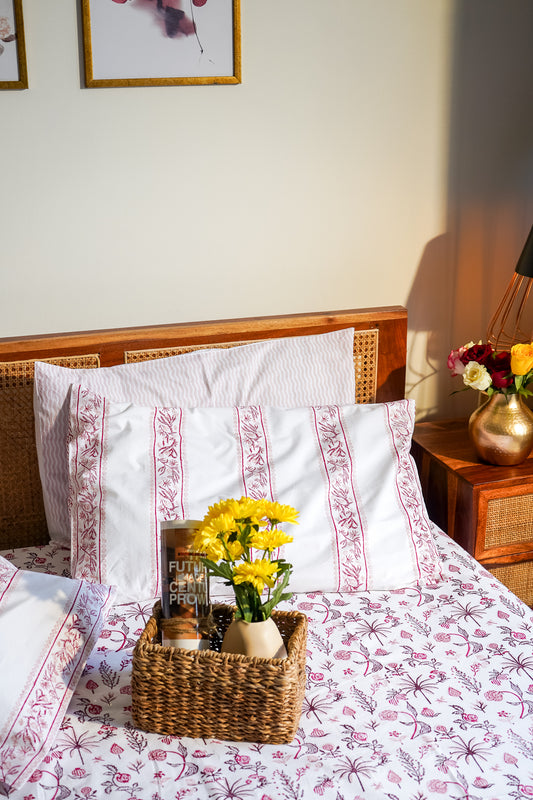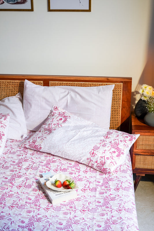 Magenta and pink 2 colour matching motif bedsheet set