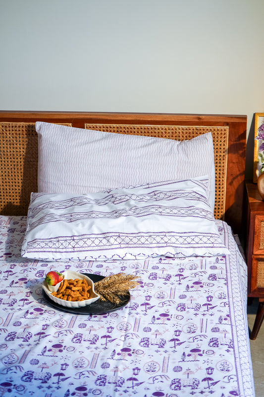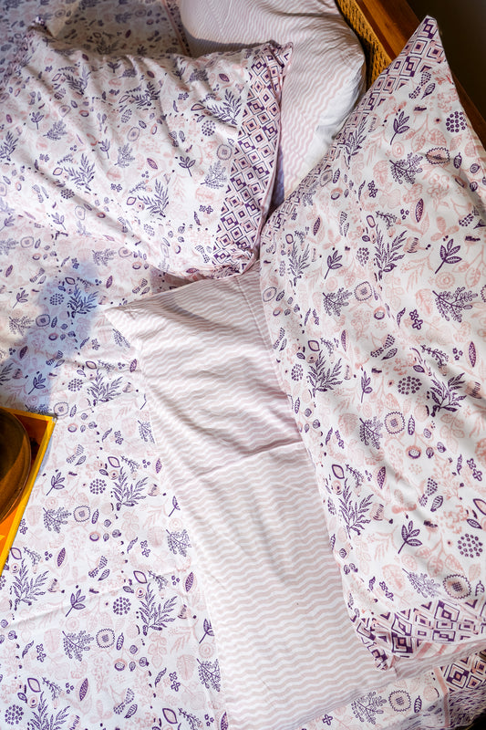 Lilac and pink teen anaar bedsheet set (abstract jaal)