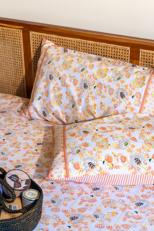 Grey and orange patte pe patta bedsheet set