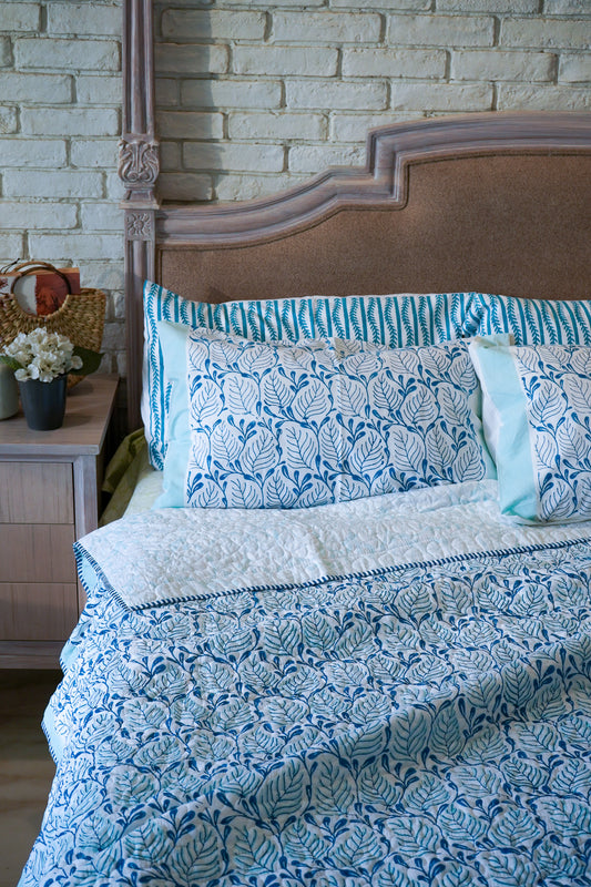 Sky blue long leaves jaal mulmul quilt