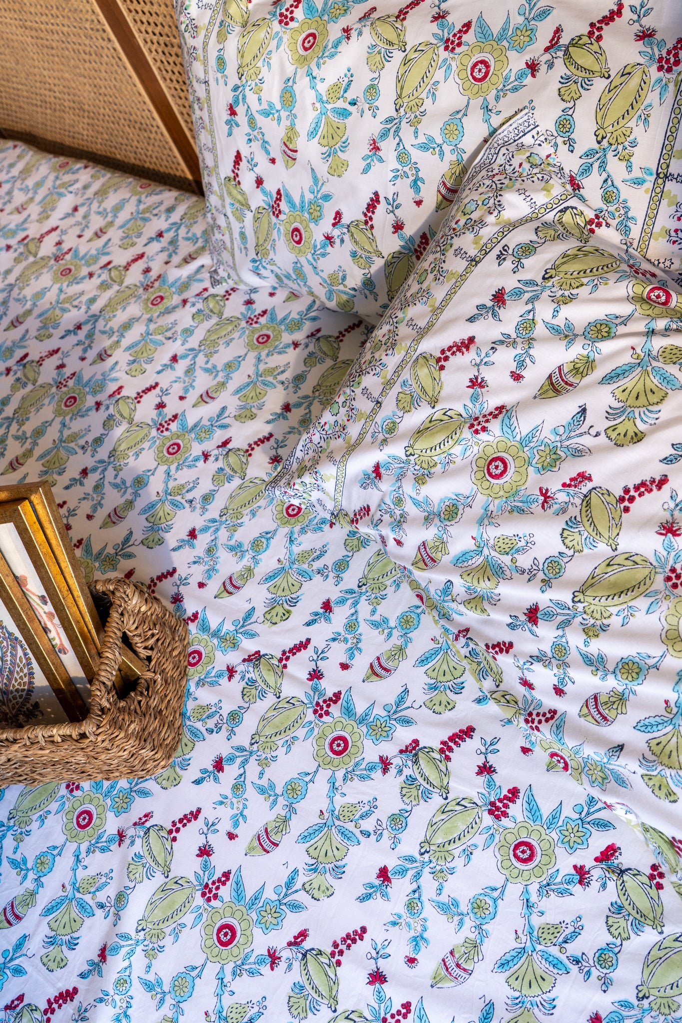 Blue and green heera jaal motif bedsheet set