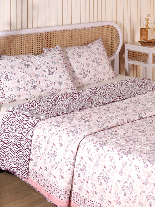 Lilac and pink kamal phool mulmul quilt (floral jaal)