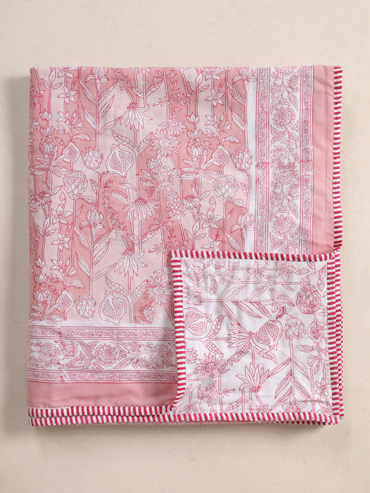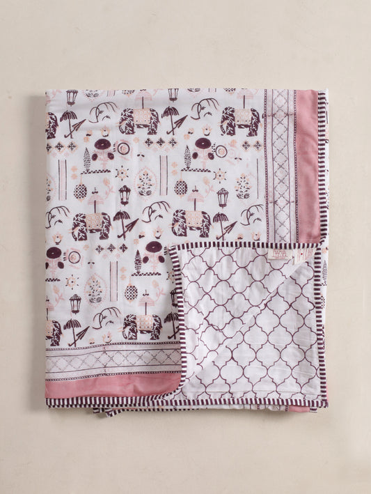 Lilac and pink teen anaar mulmul quilt (abstract jaal)