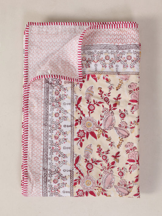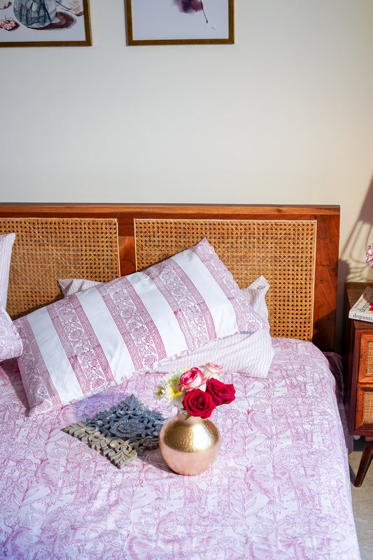 Magenta and pink (beige gadh) phal aur phool bedsheet set