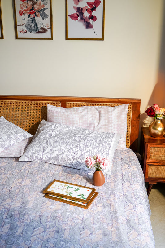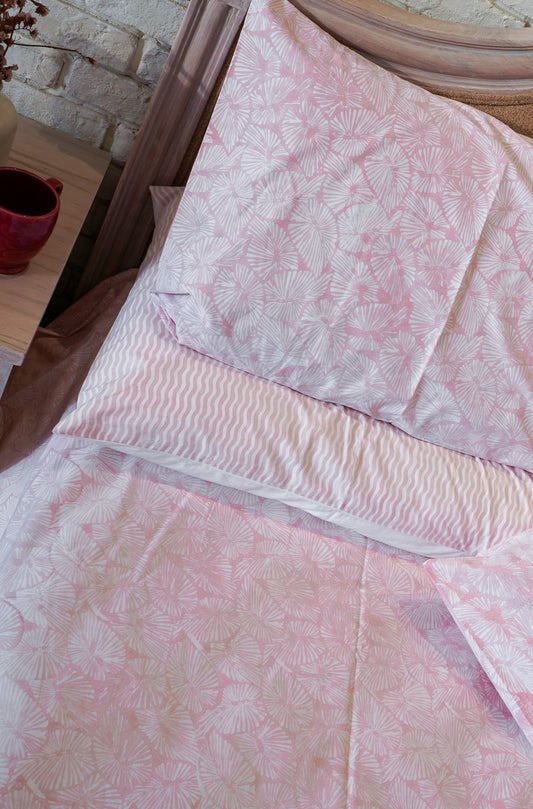 Light pink small lines leaves jaal bedsheet set