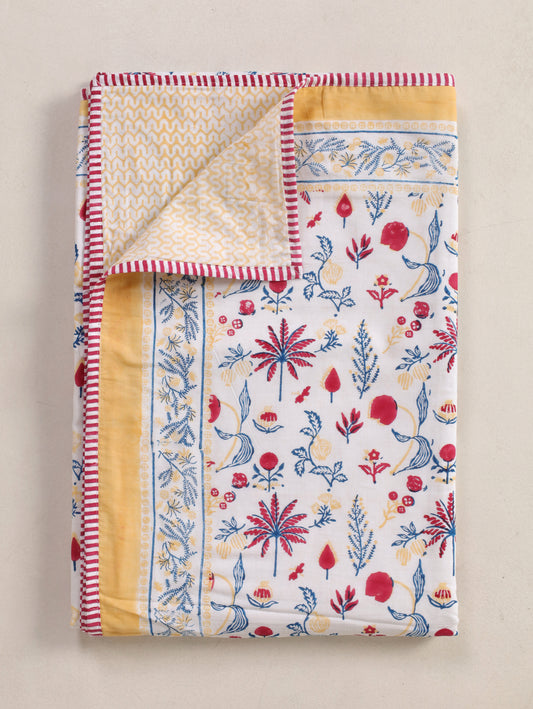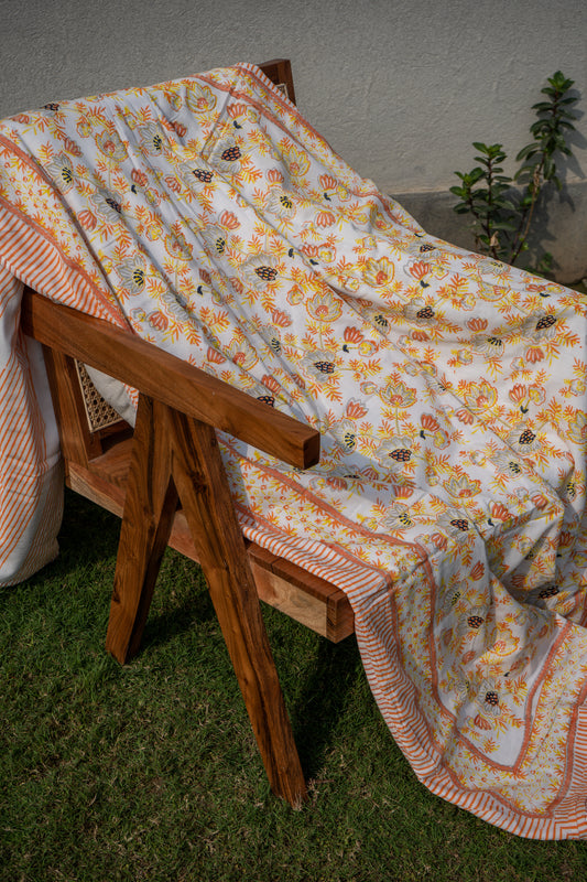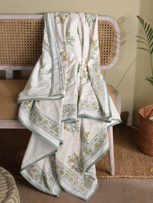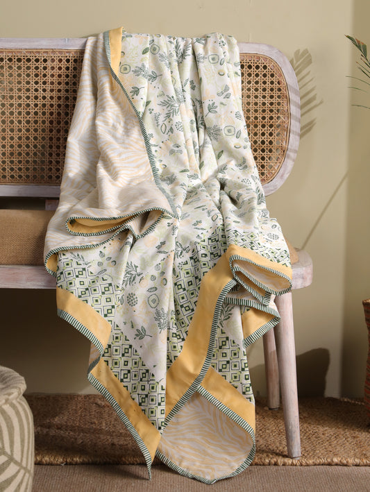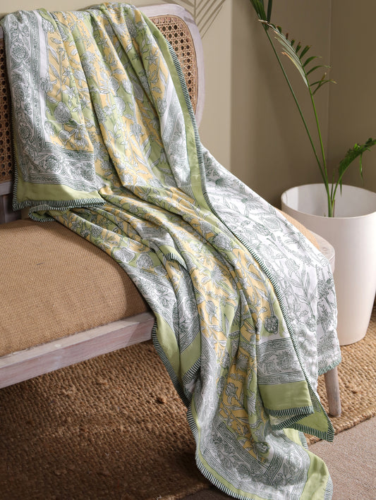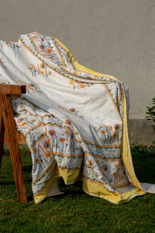 This quilt is an incredible value for the money.Its rare to find an item that blends beauty comfort, and durability so perfectly. Malmal quilt with greenparrot, yellow blooming flowers is so vibrant and classic