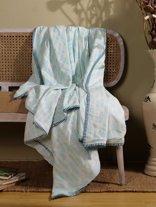 Sky blue long leaves jaal mulmul dohar