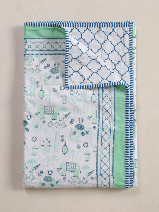 Blue and sea green scattered ethnic mulmul dohar