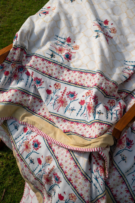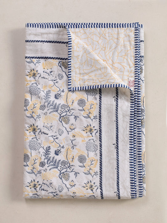Blue grey and yellow kamal phool mulmul dohar (floral jaal)