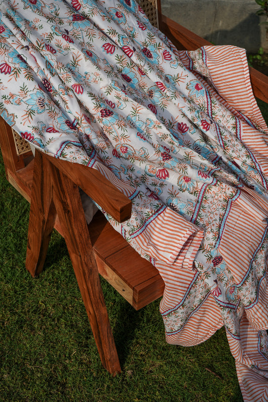 Grey and orange patte pe patta mulmul dohar