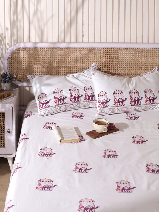 Magenta and pink 2 colour matching motif fitted bedsheet set